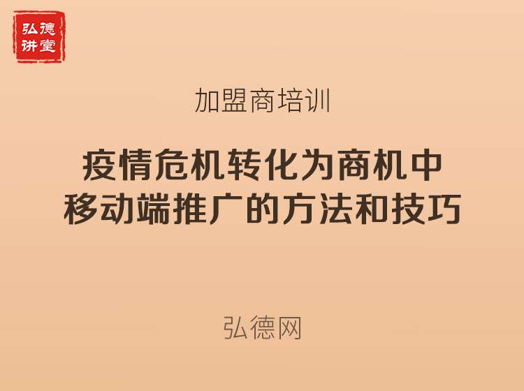 【弘德网】疫情之下,公共安全领域亦受冲击,传统线下宣传推广受到影响。转型线上,成为企业首选解决方案。 本期弘德网为商家推出专项课程之“疫情危机转化为商机中,移动端推广的方法和技巧”,如何让企业“转危为机”,敬请期待!